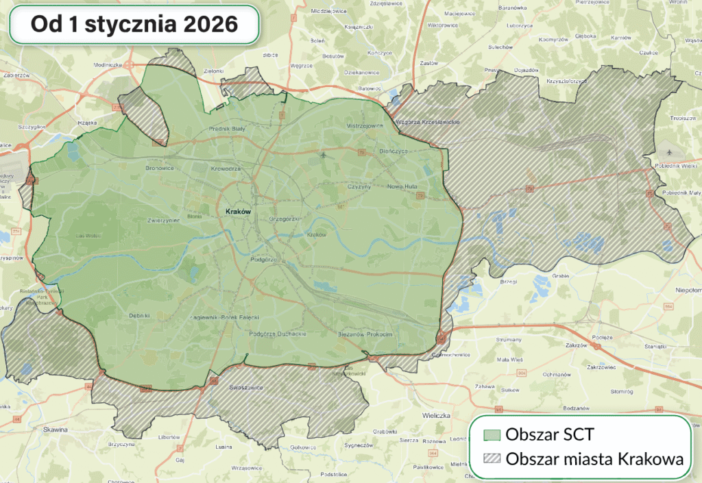 - Szpital Uniwersytecki (Nowa Siedziba, Prokocim): TAK/NA GRANICY. Szpital leży przy ul. Jakubowskiego, blisko ul. Wielickiej. Uwaga: ul. Wielicka jest częściowo wyłączona ze strefy, co ułatwia dojazd, ale sam teren szpitala leży wewnątrz obszaru objętego SCT. Ważne: Dojazd do placówek medycznych w dniu wizyty jest zwolniony z zakazu, ale wymaga wcześniejszego zgłoszenia!.