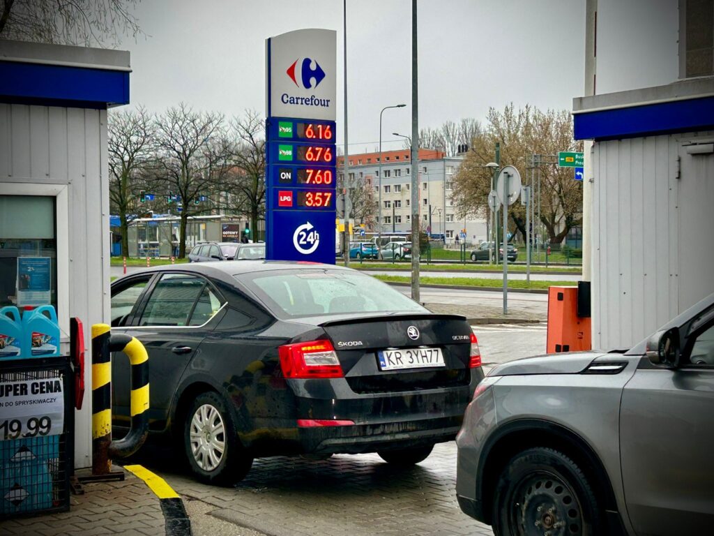 Jeszcze kilka dni temu krakowskie dystrybutory pokazywały ceny, które przyprawiały o ból głowy. Diesel po ponad 9 złotych, benzyna zbliżająca się do ośmiu. Dziś na tablicy stacji Carrefour widać inne liczby: Pb95 – 6,16 zł, Pb98 – 6,76 zł, olej napędowy – 7,60 zł, LPG – 3,57 zł. Dystrybutor przy jednej z krakowskich stacji wskazuje dokładnie tę samą cenę oleju napędowego. Mechanizm uruchomiono.
