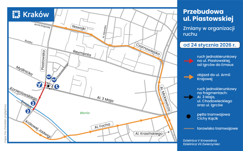 Kiedy odetchniemy z ulgą? Według harmonogramu przywrócenie stałej organizacji ruchu planowane jest na 31 sierpnia 2026 r.. Pozostaje mieć nadzieję, że wykonawca dotrzyma terminów, bo Piastowska to jedna z kluczowych arterii tej części Krakowa.