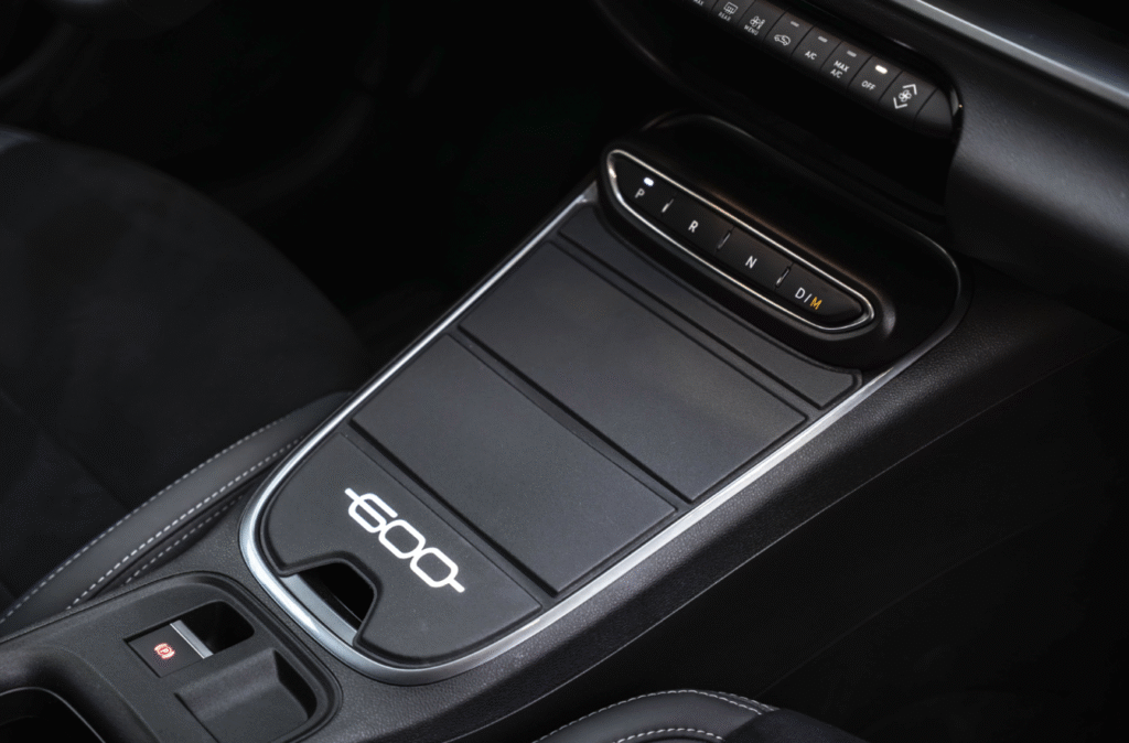 Długość 4,17 m plasuje 600 Sport w gronie kompaktów, jednak wnętrze zaskakuje. Pojemność bagażnika w wersji hybrydowej wynosi 385 litrów – wynik przyzwoity jak na auto tej klasy. Sportowe fotele w czarnym kolorze i ciemne wykończenie deski rozdzielczej tworzą spójny, charakterny klimat. Duże ekrany – jeden za kierownicą, drugi obsługujący multimedia – to standard coraz bardziej oczywisty w tej klasie, ale wykonany tu z włoską dbałością o detal.